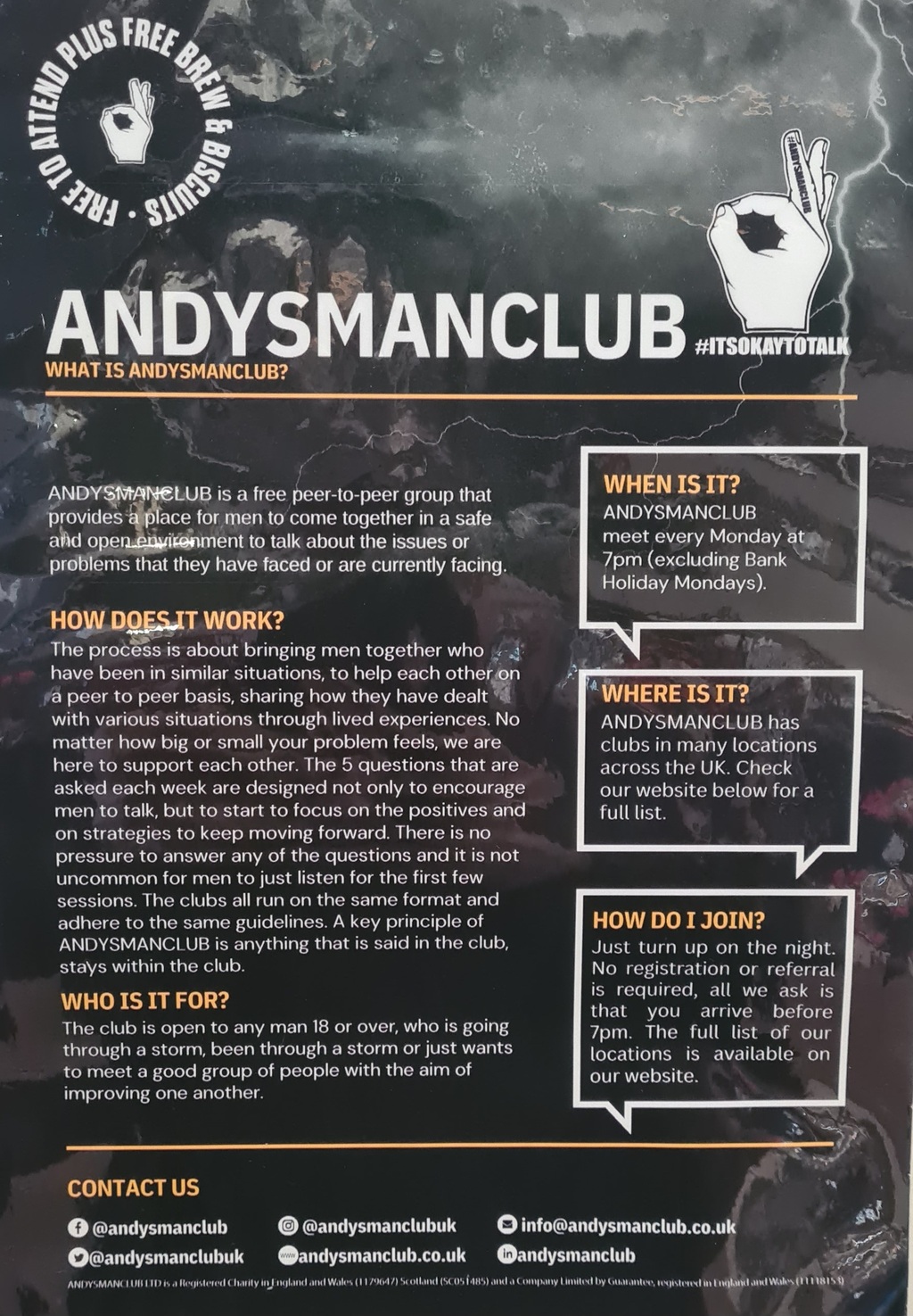 We are raising funds for ANDYSMANCLUB, which is a peer to peer group that provides a place for men to come together in a safe and open enviroment to talk about issues or problems that they have faced or are currently facing.